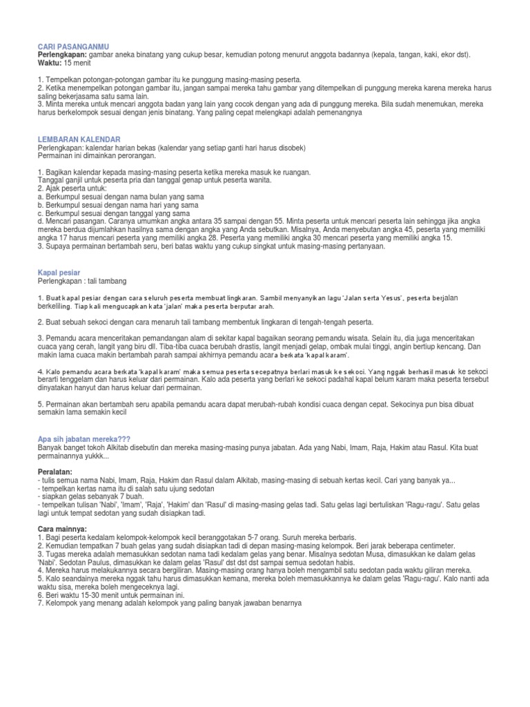 Langkah pertama sebelum memulai games nya adalah membagi peserta menjadi beberapa kelompok misalnya 20 orang di bagi menjadi 4 kelompok jadi 1. Yesus maria yusuf abraham dll. Karena begitu besar kasih allah akan dunia ini sehingga ia telah mengaruniakan anak nya yang tunggal supaya setiap orang yang percaya kepada nya tidak binasa melainkan beroleh hidup yang kekal.