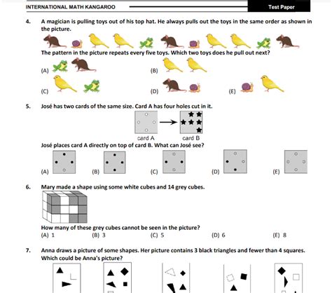 To download registration and other forms. Each year over six million school pupils aged 5 to 18 from more than 50 countries throughout the world take part at various levels. Math kangaroo level 5 6.