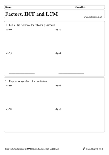 Welcome to the lets study together online free pdf section. Express 60 as the product of its prime factors. Watch this gcse maths revision lesson on highest common factor hcf and lowest common multiple lcm.