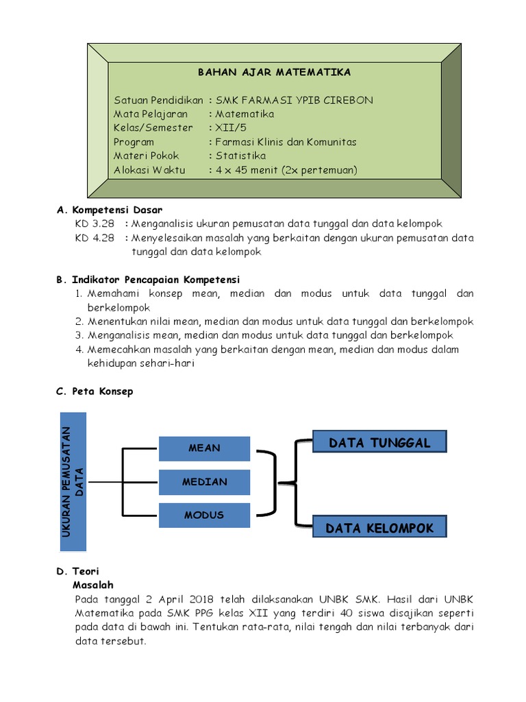 Mean modus median untuk data tunggal dan kelompok dalam kehidupan sehari hari kita pasti berhubungan dengan suatu data dengan data seperti statistik atau diagram kita bisa mengetahui suatu informasi hanya dengan melihatnyadata data tersebut sering kali berkaitan dengan mean modus dan median. Kali ini kita akan membahas tentang pelajaran statistika bab ukuran pemusatan data yaitu rumus menghitung mean median dan modus untuk data tunggal dan berkelompok. Kakak akan mulai membahas dari yang paling mudah yaitu data tunggal.